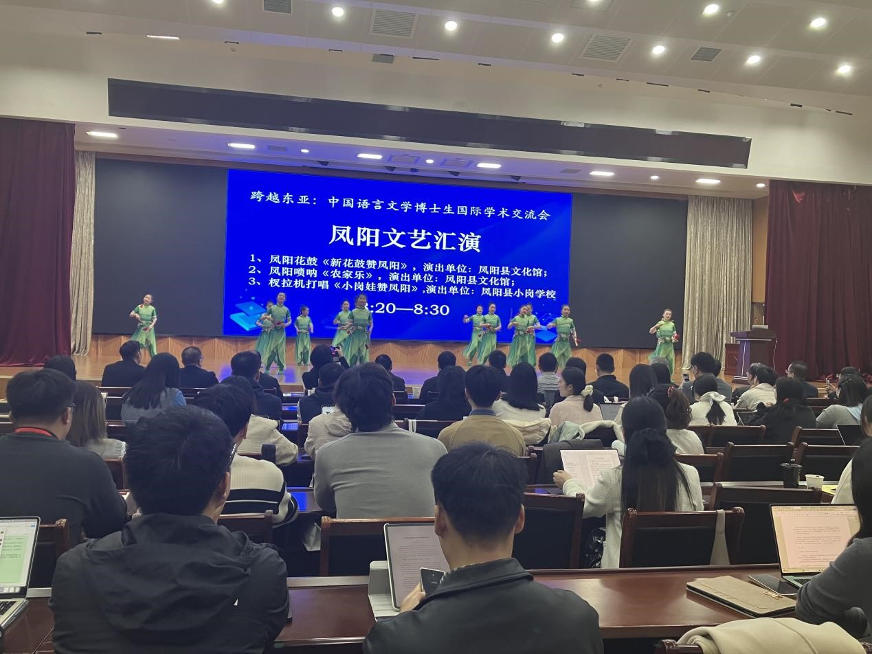 11月6日上午,吉林大学第十八届博士生国际学术论坛——中国语言文学分论坛正式开幕。凤阳县文化馆及凤阳县小岗学校首先带来了凤阳花鼓、凤阳唢呐、杈拉机打唱等文艺节目。凤阳县人民政府副县长胡宗权先生、吉林大学文学院暨新闻与传播学院院长张丛皞教授、韩国高丽大学头脑韩国(BK)21中日研究团团长金俊渊教授发表致辞,对来自东亚各地的学者和博士生表示热烈欢迎,强调了本次国际学术交流对于推动东亚语言文学学科发展的重要意义。中文系主任李静教授主持了开幕式。
