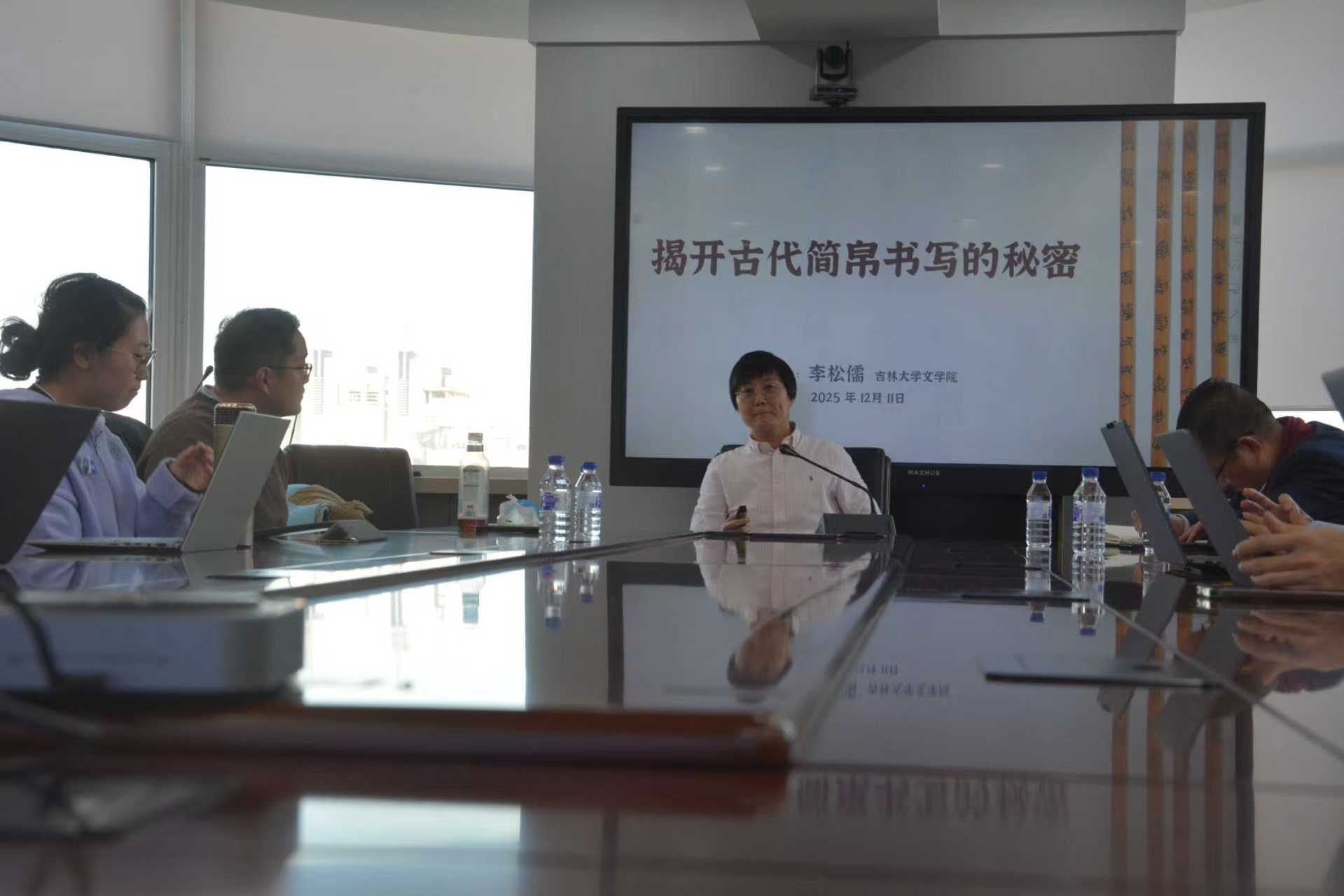 2025年12月11日,吉林大学文学院暨新闻与传播学院举办“青年学术骨干学术论坛”第一场,李松儒教授应邀带来题为“揭开古代简帛的秘密”的专题学术讲座。讲座聚焦于简帛文献中的笔迹问题,系统阐述了如何借助现代笔迹学方法解码古书简中古文字形态,进而推动人文领域的相关研究,文学院副院长李子君教授主持讲座。