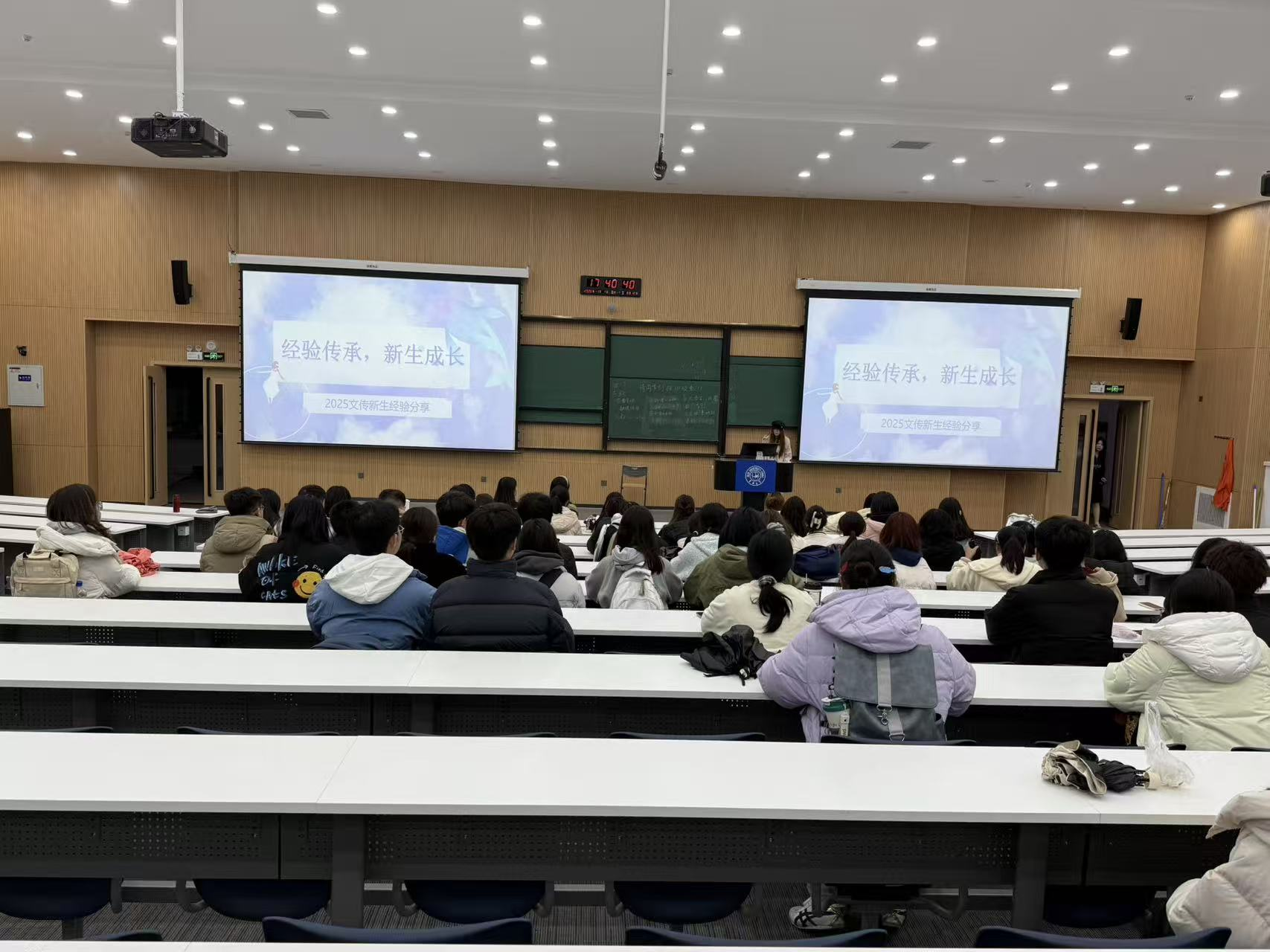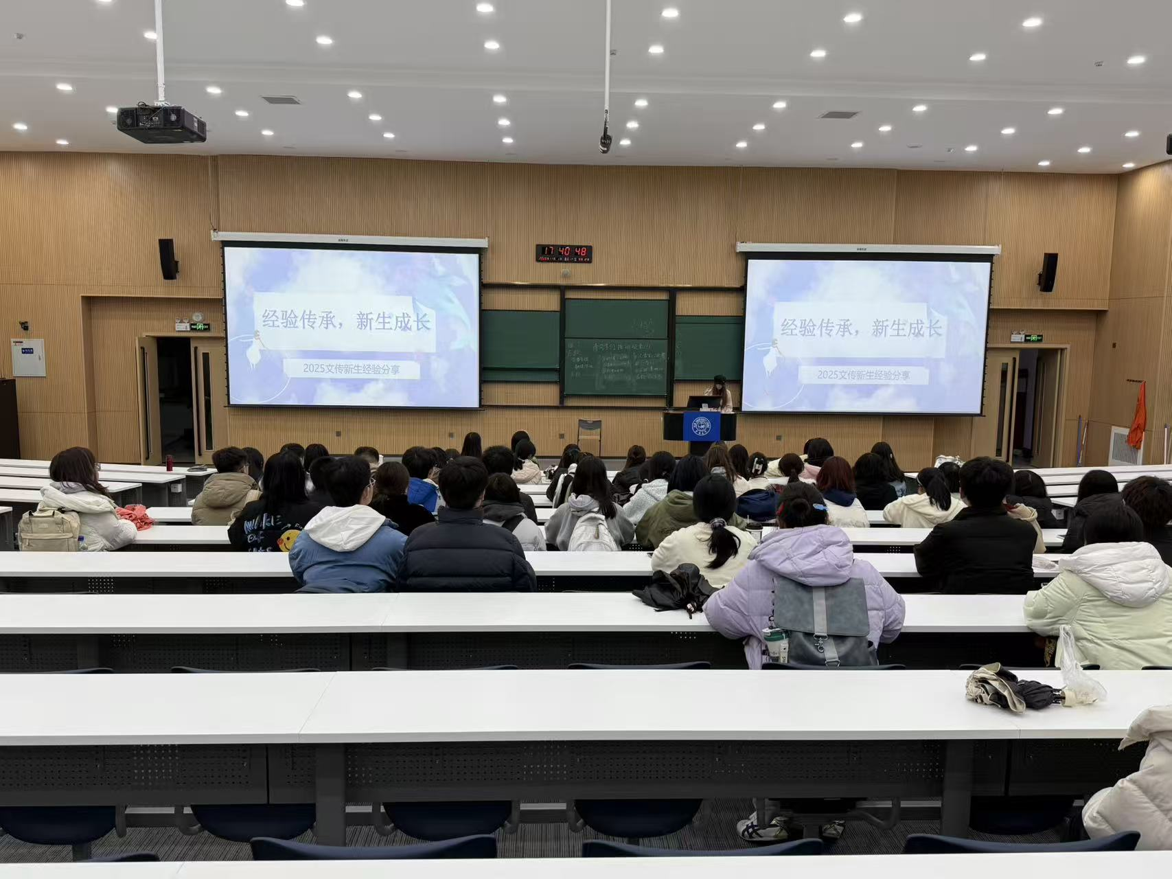 2025年11月1日下午,2025级文传新生经验交流会在敬信楼第五阶梯教室隆重举办。本次活动由2025级汉语言文学专业班委策划,以“经验传承,新生成长”为主题,旨在加强新生与学长学姐们的沟通交流,帮助新生更好地适应大学生活。
